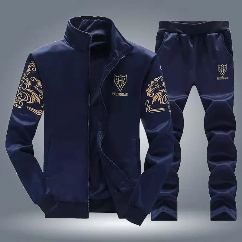 FM Arm Printed Zipper Style 2-Pcs Winter Track-suit