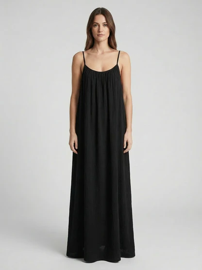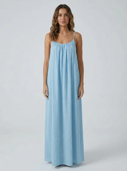 Effortlessly chic and endlessly versatile, this elegant maxi sundress is designed for comfort and style. Featuring a relaxed, flowy silhouette, it drapes beautifully to create a flattering and airy fit perfect for any occasion.